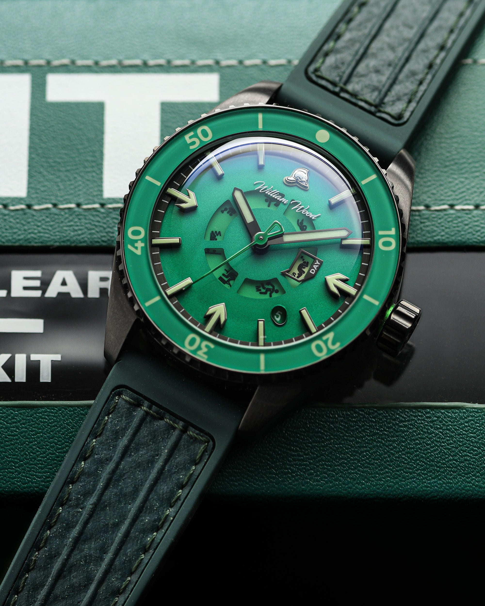 We design this watch we wanted to make sure that it illuminated just like a fire exit sign at night. We therefore added C1 grade lume to our applied indices, hands, helmet dial logo, bezel markings, caseback and fire exit arrow buckle. The result is an incredible watch both in the day and the night.