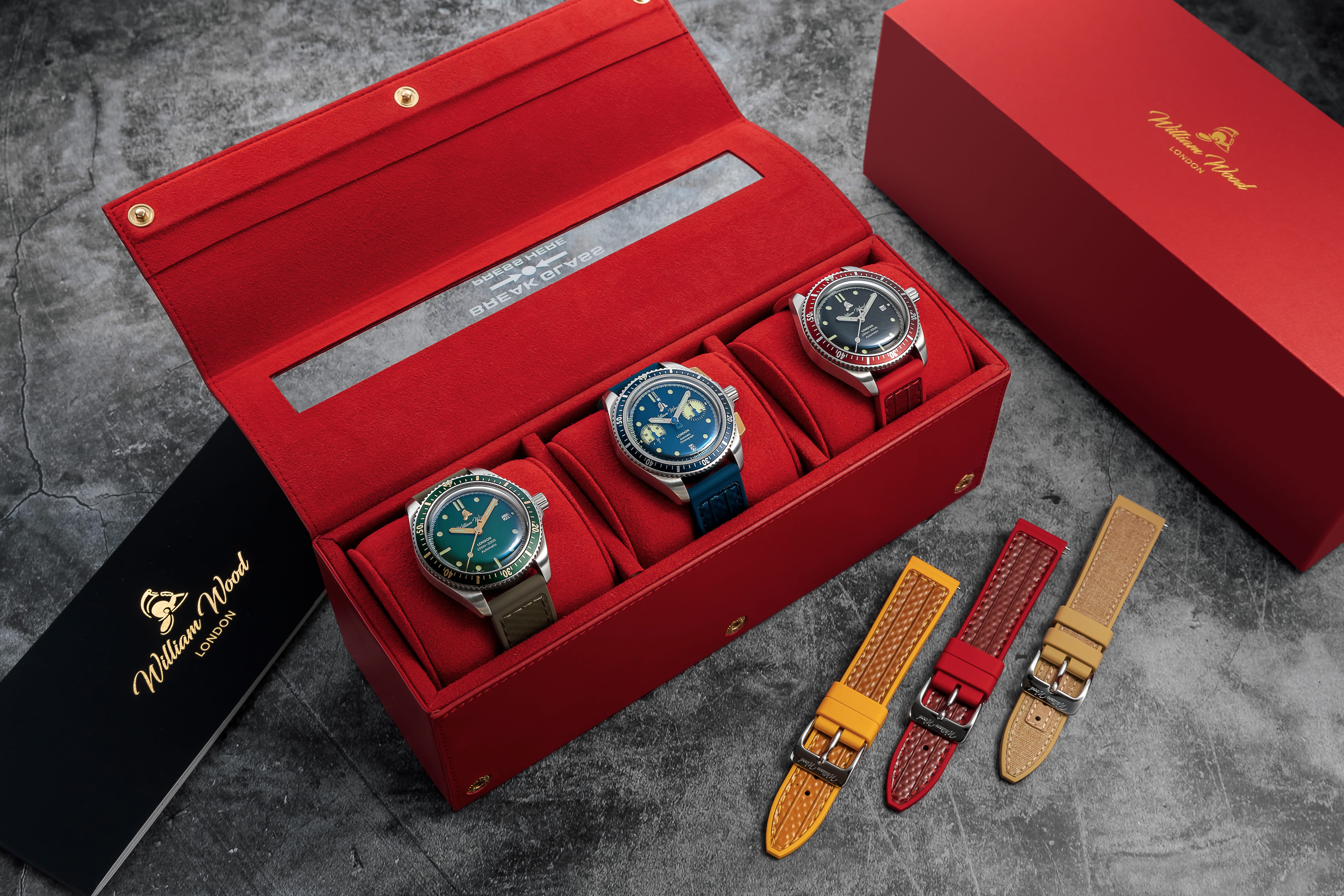 We have really pushed the boundaries this time with a genuine Italian leather watch presentation box inspired by a fire alarm. This unboxing will set your mind alight. The box is the perfect travel companion size and has a real wow factor when unboxing your new watch.