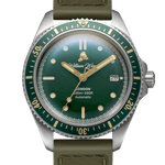 Melbourne Fire Brigade stainless steel automatic diving range. Featuring vintage fire bell seconds hand, fire engine pattern seconds track, crown made from a 100 year old melted-down British brass firefighter's helmet, Melbourne Fire Brigade crest caseback and straps made from upcycled fire hose. Beautifully presented in our genuine Italian leather, fire hose inspired travel roll, that holds up to 3 watches. The lead time to produce this watch is 3 - 4 weeks from time you place your order.