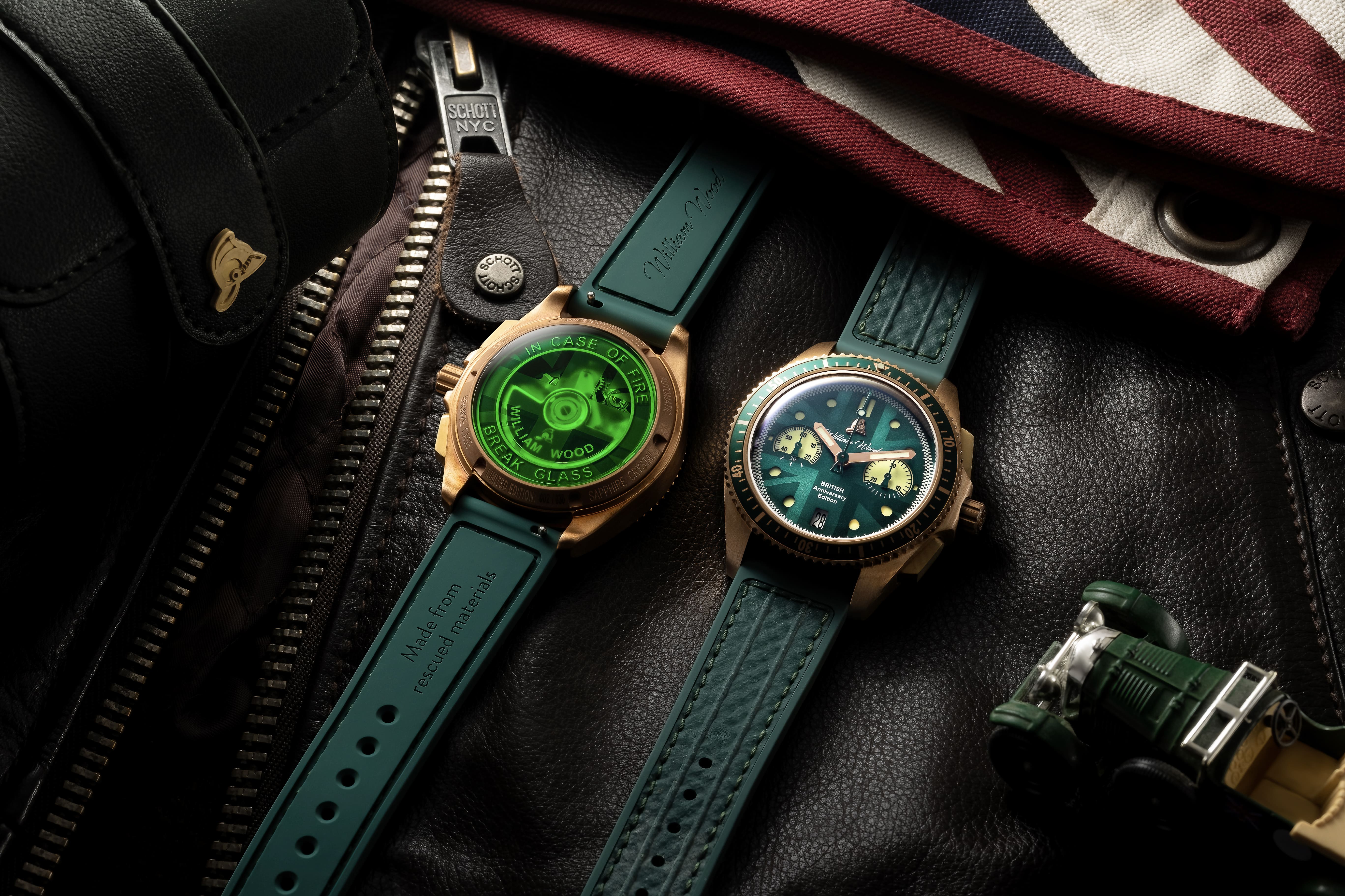 A vintage firefighter’s helmet, for example, is the logo at William Wood Watches.