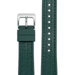 British Racing Green fire hose strap. Each cut of fire hose is completely unique to the owner. The strap has quick-release functionality so you can add or remove to your watch with no tools needed.