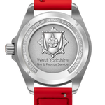 Our case is finished in 316L grade stainless steel with the sides and lugs executed with a brushed finish. Our aluminium bezel is unidirectional with a strong setting to each click. The caseback features the West Yorkshire Fire and Rescue Service logo pressed into the metal.